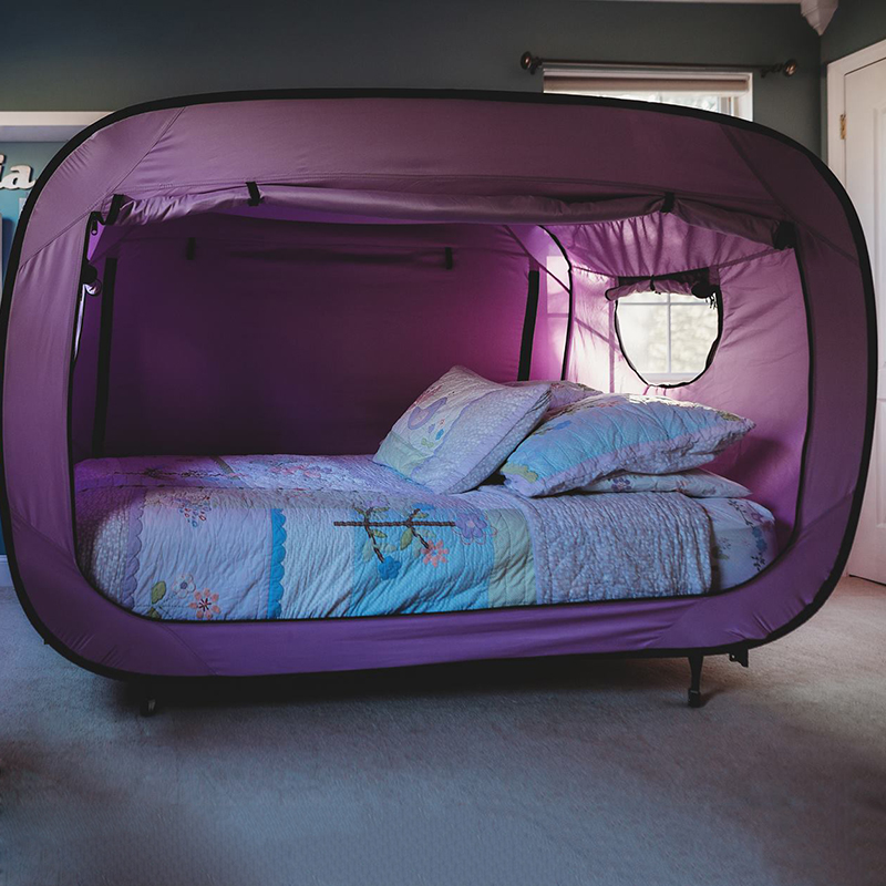 帐篷造型简约大方,空间很大,有属于自己的私密空间,清新自然的色泽和防蚊透气的材质,使用寿命很长。它的双层门设计方便又美观,深度睡眠8小时,保证了睡眠质量。而且帐篷的可选颜色丰富,紫色、宝蓝色、粉色、黑色和迷彩色,总能找到你自己喜欢的,帐篷的功能均很实用,可以遮光也可以防蚊。