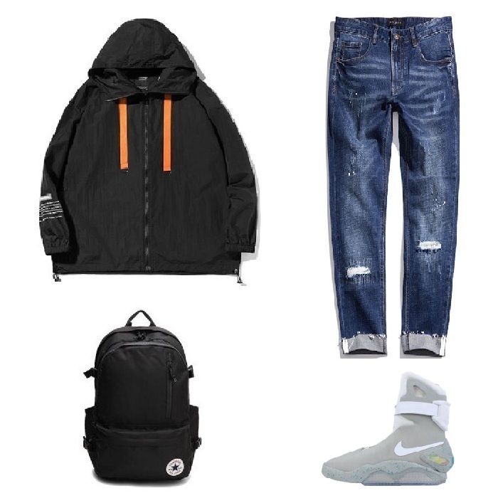 NIKE是最具经典性的运动品牌,以其源源不绝的创新设计和复刻经典款夺得其大群拥护者的爱戴。这款运动鞋整体采用灰色的设计,再搭配上鞋侧的超大logo回到未来印花设计, 以及超高的气垫科技具有超强减震特性,炫酷时尚,把潮流运动与科技功能融洽的结合。上衣可选择一件夹克外套,打破原本沉闷呆板的格调。再搭配一条街头风味浓重的破洞牛仔裤,轻松打造街头潮男的形象,一出场就占据视野。