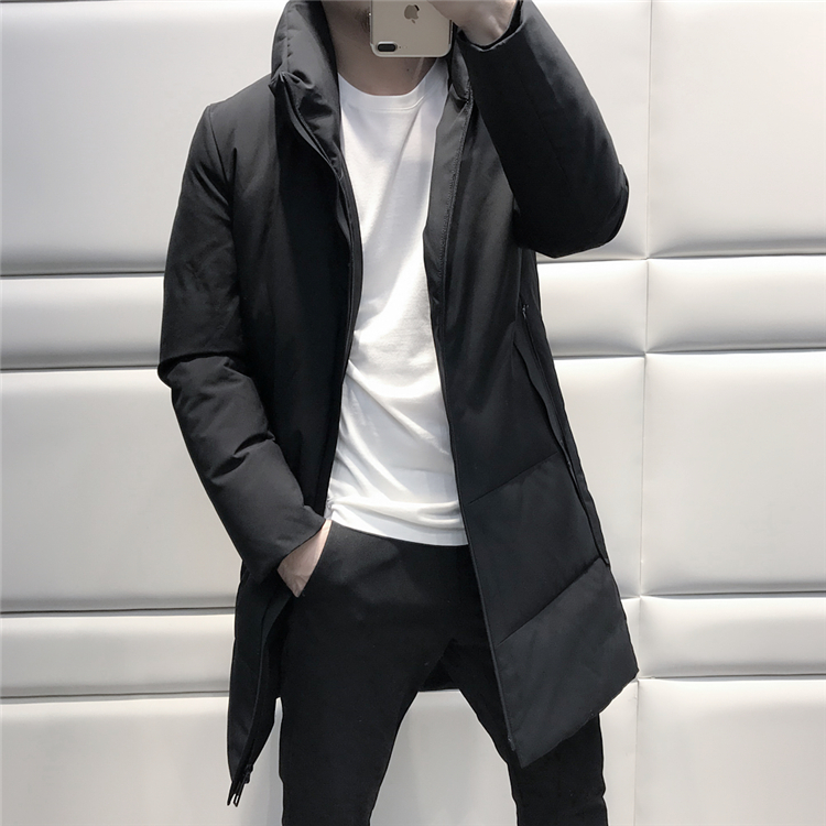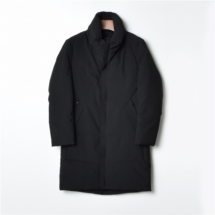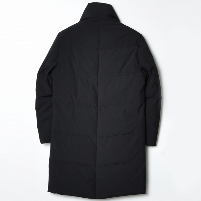 利落飘逸的加长衣体刻画出率性飘逸的休闲气息,简短挺括的立领设计配合挺实的肩线修身出硬朗率性的都市风潮,清爽利落的侧缝拉链口袋以笔直的线条嵌入衣体有效显瘦展现出大方干练的商务风味。