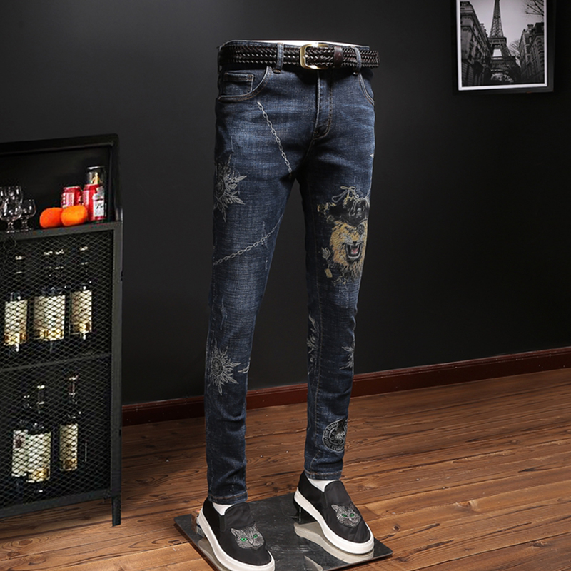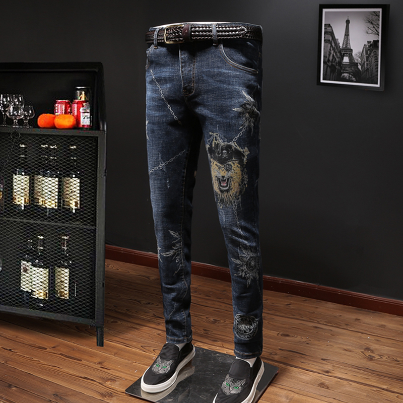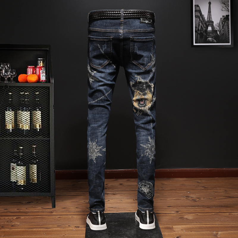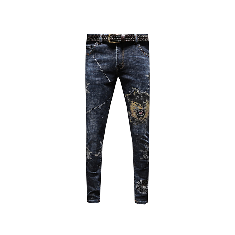 牛仔裤早已不是牛仔的专属,更是一个男人帅气的标识,所以一个男人,怎么能没有一条潮流的牛仔裤呢?奢远的这款个性牛仔裤,棉质面料打造裤身,拥有良好的亲肤透气性,赋予舒适自在的着装感受;采用修身的版型,穿着具有极好的贴合性,凸显男士帅气硬朗笔直的腿部曲线;独特的印花装饰,彰显精致潮流,穿在身上非常的帅气,使得整个人看起来青春活力。
