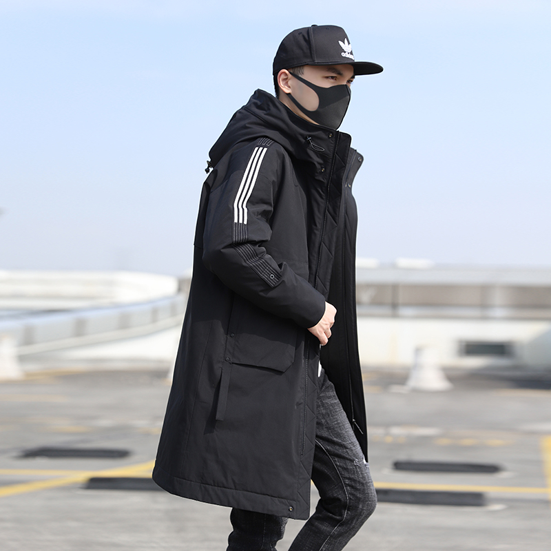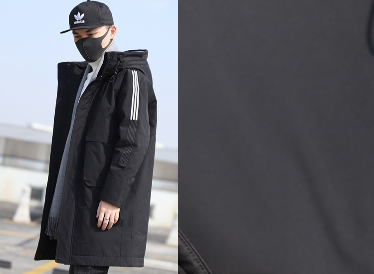 虽然这款羽绒服的主题颜色是黑色,但设计师却恰到好处的在两边的肩部装饰有三杠白色的竖条纹,散发浓浓的运动气息,恰到好处的衣身长度显高能力很强,尽显高挑的身材比例。