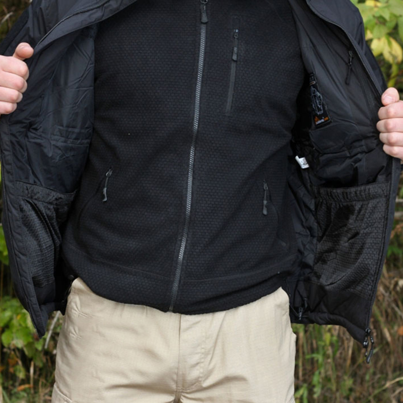 风帽帽可以很方便的通过两个胸前口袋袋里面的抽绳调整,同时手还不用抽出口袋。骑兵软壳的面料采用了美国军标处理,防泼水耐油污,多功能口袋的设计,可以存放不同性质的物品。绒布口袋设计,保暖舒适贴身。