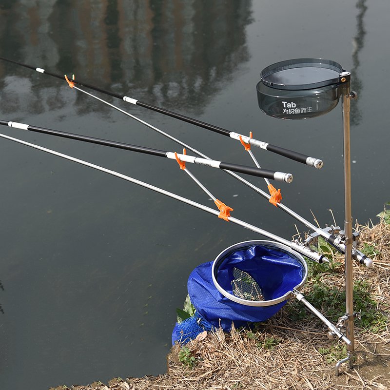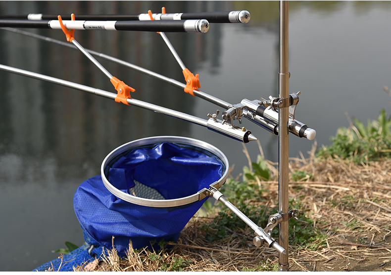 支架竿部采用不锈钢材质制成,精工制作,结实耐用;采用全新的角度固定设计,只需轻轻一按既可调节角度;V型支架头采用高级ABS工程塑料,美观大气,不划竿身,坚固耐用;优质塑料把手,可插入钓台、钓箱,钓鱼时更牢固。