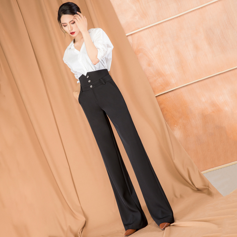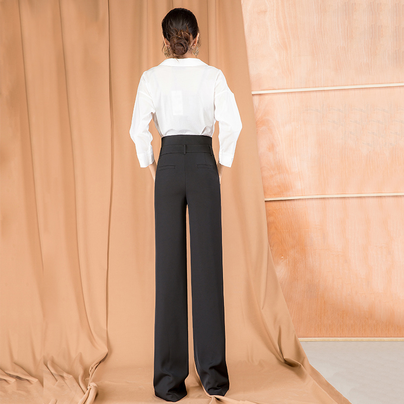 高腰的设计,拉长腿部线条,显瘦效果很好,高腰的版型,很显高挑,修身的剪裁,修饰腿部曲线,上身很有范。