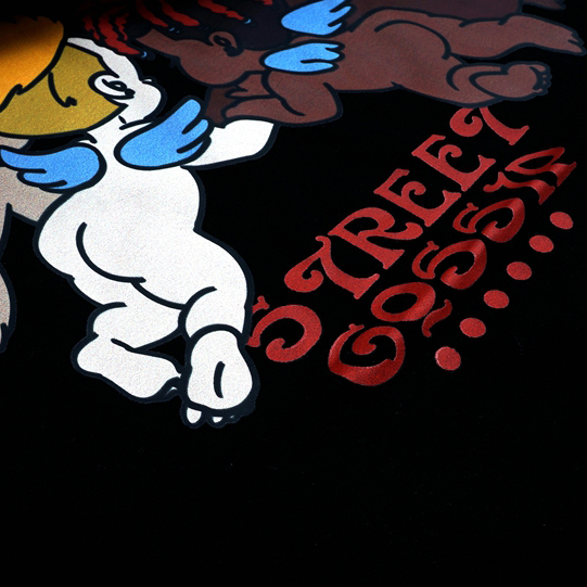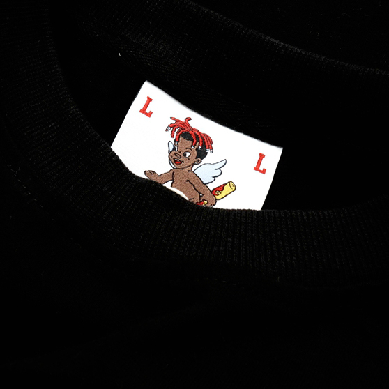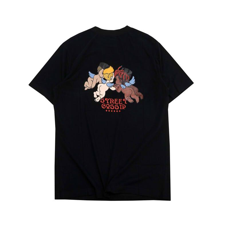 印花款式的休闲T恤,在前后分别融入了小脏辫天使的印花,风格俏皮,不同的造型点缀下也起到了呼应的效果,美轮美奂。衣身采用了优选的纯棉材质,做工优良,透气性强,软糯而亲肤。与此同时,圆领宽松款的版型,更是使得线条流畅有型,充溢着休闲的腔调,焕发活力的街头风。