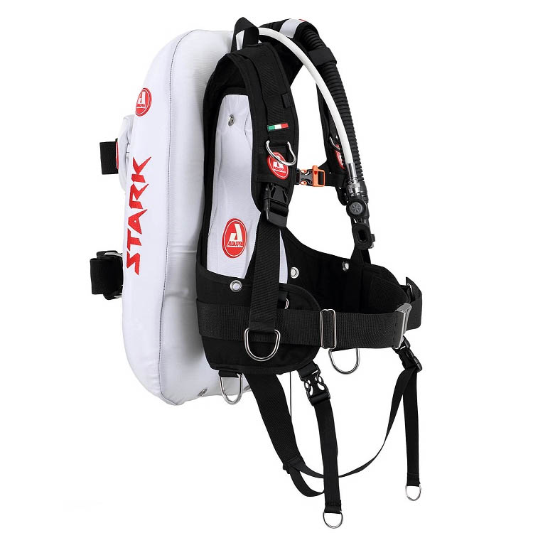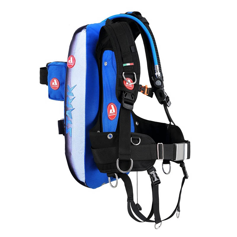 超舒适STARK 16 EVO是一款专为潜水爱好者设计的旅行BCD,采用了模块化技术体系T.M.S.。用户完全可以根据自己的需要进行非常个性化的配置。背负系统是预制成型的,非常符合人体工程学。各种跟人体接触的位置都有相应的衬垫,使用时非常舒服,气囊重量轻,具有流体动力学性能,当它没有充气时,它保持贴合并紧凑到油箱,从而提高了灵活性,背负系统上有12个尼龙挂扣,方便用户挂载各种个人所需的潜水配件。
