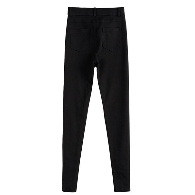 高腰的设计,拉长腿部线条,显瘦效果很好,高腰的版型,很显高挑,修身的剪裁,修饰腿部曲线,上身很有范。