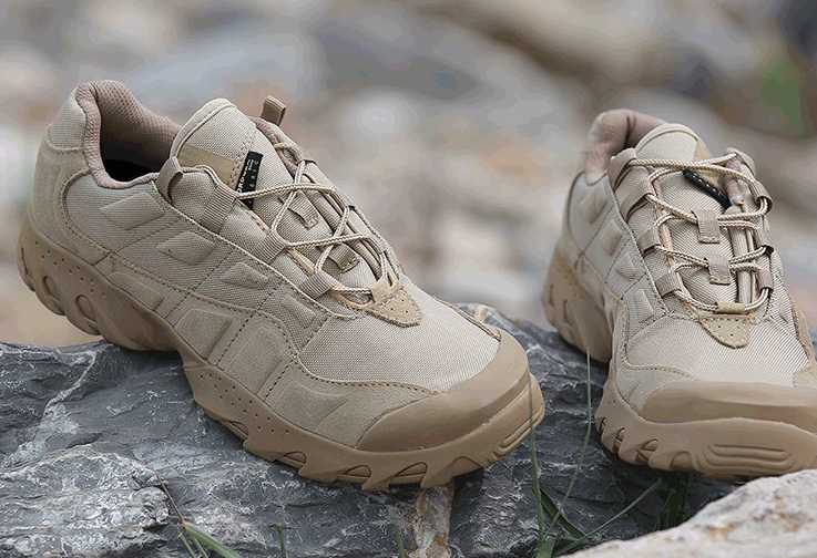 鞋身采用轻便海绵材质填充,有效防护关键部位,提升鞋子战术性能,同时还降低鞋的自重。外层釆用蜂巢网布设计,耐磨透气,穿着更加舒适贴合。加厚的EVA大底设计,抗震防滑更耐磨,抓地有力岀行舒适。
