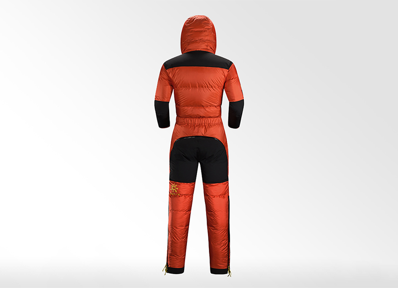 因为是连体的款式,所以这款羽绒服能够提供360度保暖系统,可以hold住严寒极地的需求。火焰红的颜色搭配能够在雪地里吸引注意,进一步确保安全。领口的魔术贴,紧密贴合身体,有效防止灌风,同时袖口也采用了魔术贴的处理,能够方便调节,贴合身体。高海拔的技术型剪裁,更是适合极地环境的特殊需求呢。