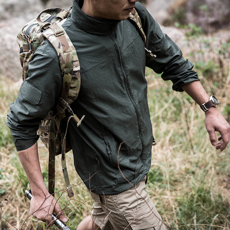 采用优质面料工艺,塑造宛如第二层肌肤的触感并有良好透气性,助你迅速融入环境。DWR防水处理技术,防污抗撕裂,拒水抗泼。反光条设计,有高效反光条,夜晚出行更安全,可调节式风帽设计,风帽后设置有抽绳,防风防晒,穿着更舒适。