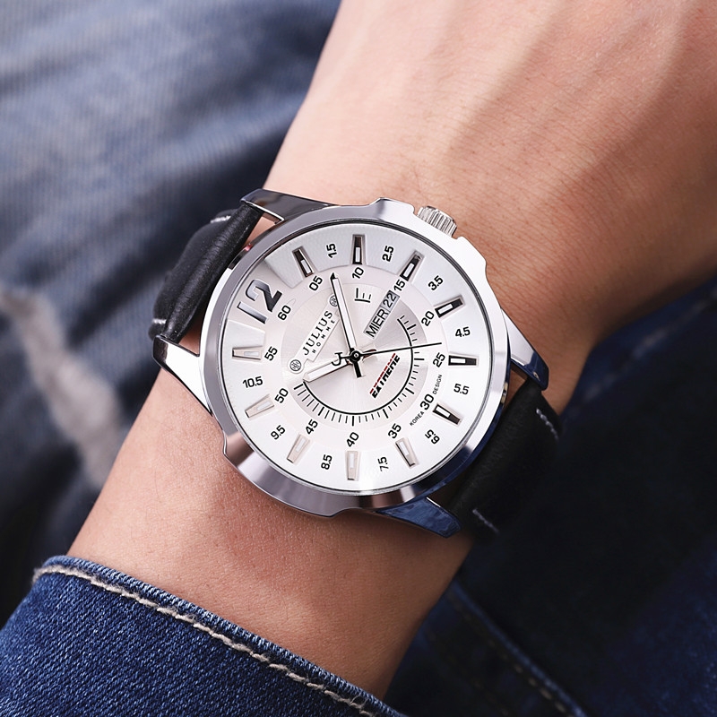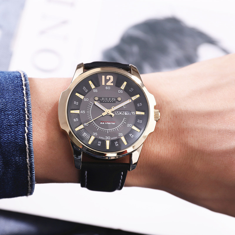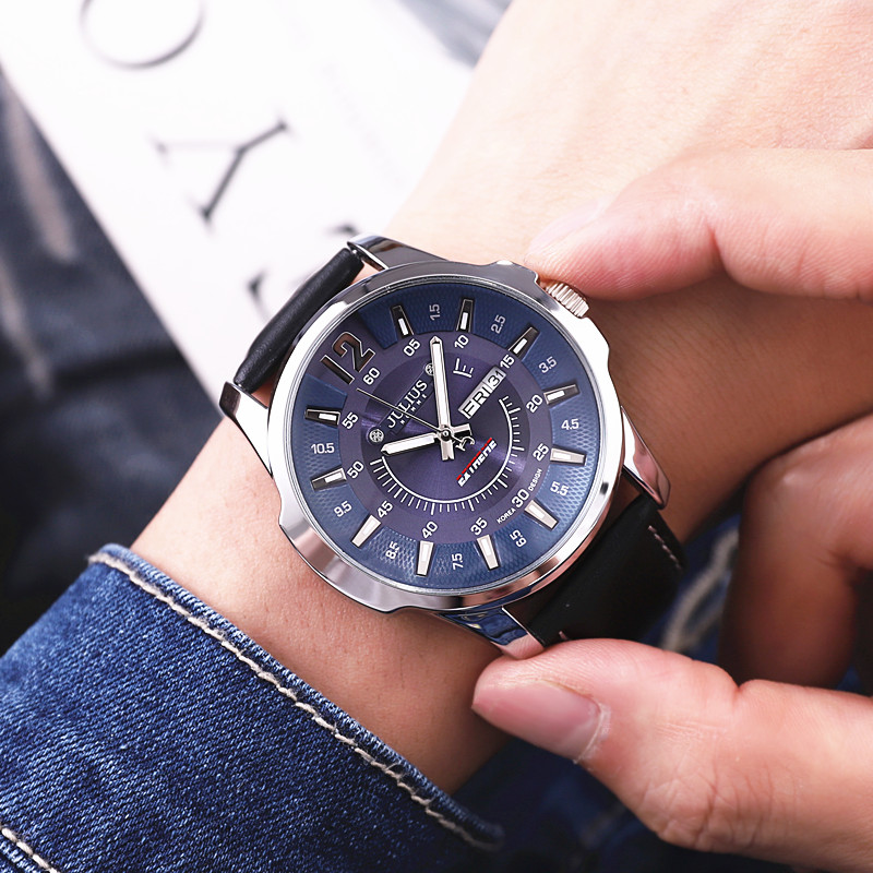 简约时尚手表采用拼色设计,整体散发出时尚风,加上圆形的表盘增添了休闲范。另外,石英机芯走时更加精准,同时真皮表带尽显大气高级感。
