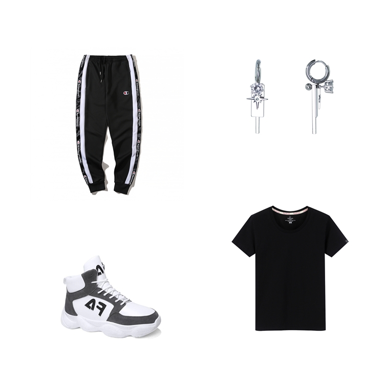 帅气的短袖搭配一款运动裤增添街头风,再踩上一双百搭运动鞋,亮眼吸睛。另外,戴上精致潮范的耳钉彰显时尚,走在街上惹人注目,回头率满满。