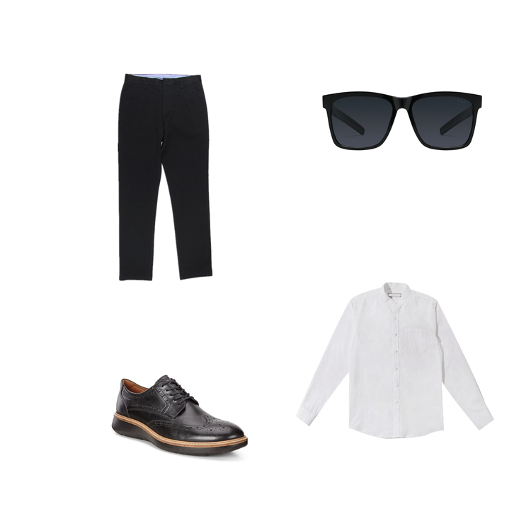 休闲裤搭配一款简约衬衫,整体展现出街头风,再戴上复古潮范的墨镜,亮眼吸睛。另外,踩上一双大气感的皮鞋注入成熟范,搭配这一身就可以出门了。