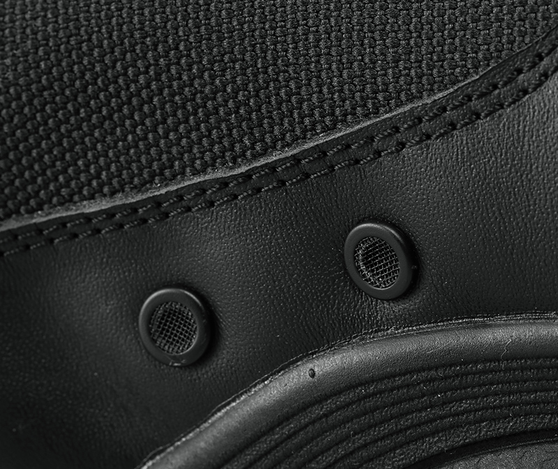 这款靴子采用具有较高耐用性的皮革材质,鞋帮面融入了轻便的尼龙,结合轻量构架设计,穿着舒适。网状内衬,穿着更加透气。五角星低耳立体地槽大底,耐磨性佳,同时具有出色的抓地力。外观保留了军靴固有的外形,是一款内外兼修的靴子。