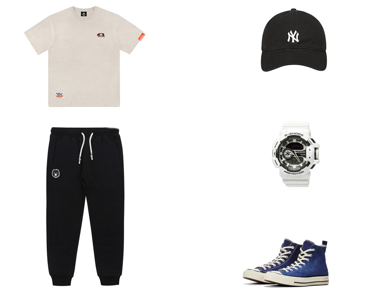 T恤上的刺绣非常的独特,简约但不失个性,百搭时尚。日常穿搭,下身直接选择一条黑色的束脚运动裤来搭配,脚踩一双拼色高帮帆布鞋,整体营造出休闲随性的气息。棒球帽和运动手表加持,增添细节看点,街头味十足。
