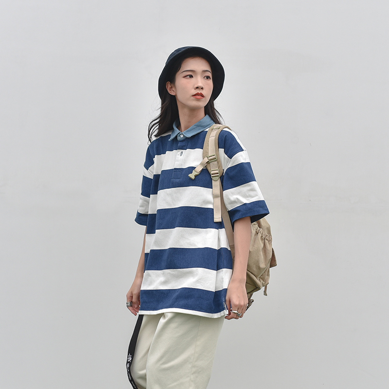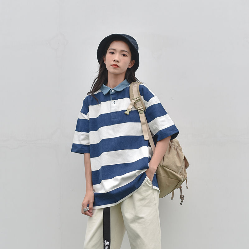 这款T恤是街头范的时尚潮流,采用了条纹的设计,时尚翻领设计帅气吸睛,简约的版型,保证了风格的大气感,穿上型男范十足,还很减龄。