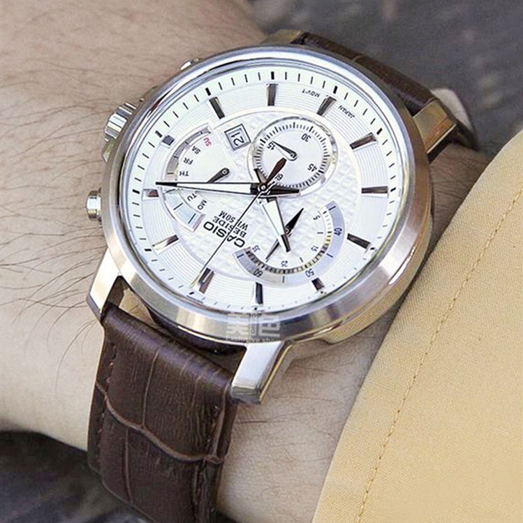这款手表设计简约时尚,日常百搭。表镜由矿物强化玻璃制作而成,清晰度高,更显品质。精钢表壳设计,坚固耐磨,不易掉色。牛皮表带设计,彰显品牌的精湛做工。
