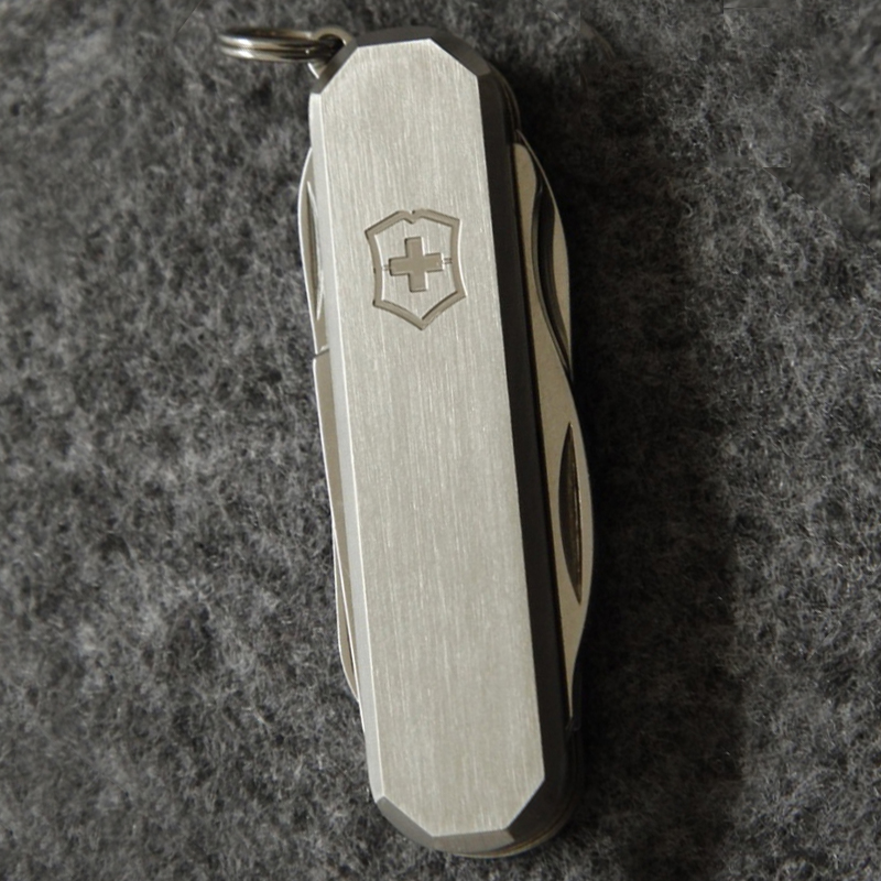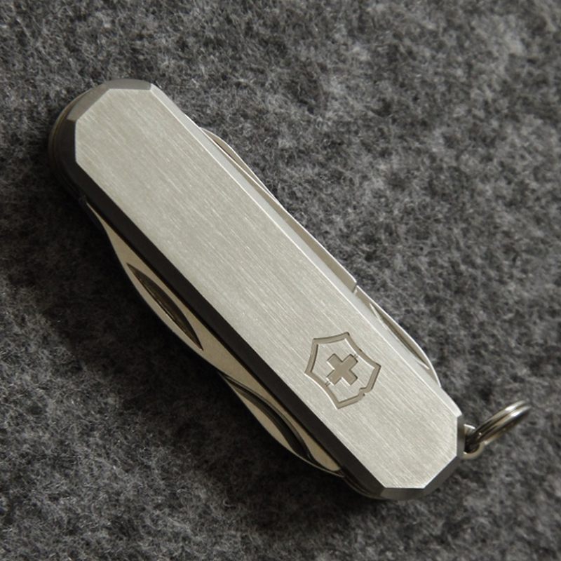 工具精致小巧,便于携带,方便更快捷,可单手操作在户外紧急的情况下,主刀可用于家庭、户外运动等,可削果皮、切割绳索等。贴片由钛合金TC4制作而成,结实耐用,表面石洗处理,刀尖圆润大气和谐,带有镊子夹取小物件,十分方便,还有牙签解决您随时随地的需求。