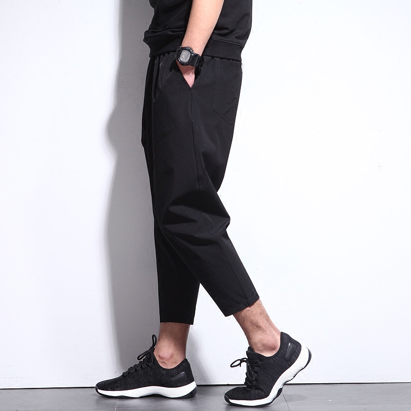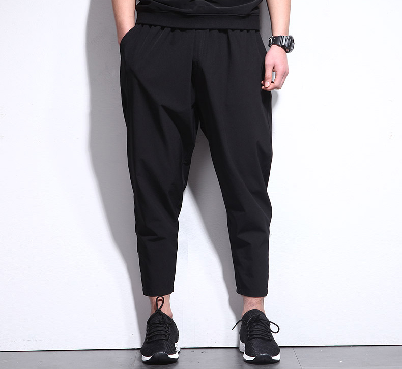 加肥加大的哈伦九分小脚裤型剪裁,有着抽绳系带松紧裤腰,随性自由调节,配上超宽松的裆部大腿围,不挑身材腰型清爽穿着。同时带来的超大活动空间,愈加清爽透气,不卡裆不闷热,畅享无拘无束潇洒体验。而微收的九分小脚收口,又能避免过分臃肿,营造出上宽下窄的嘻哈廓形,清爽雅痞间露脚踝,加大腿部分割比例,清爽塑形间视觉显瘦还显高。