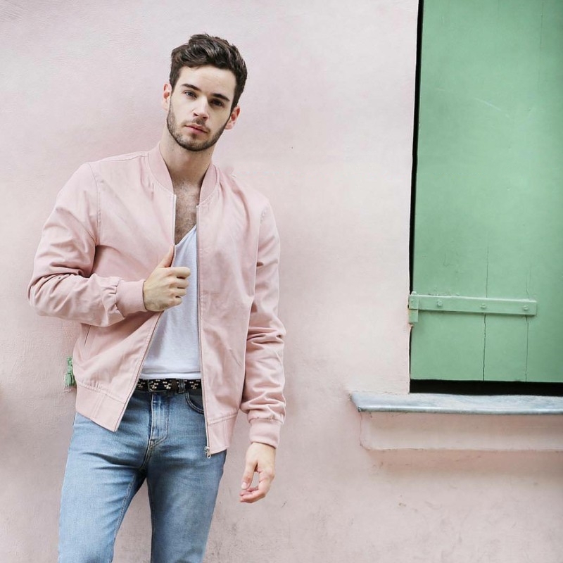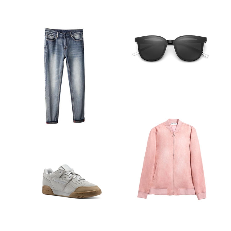 街头风夹克搭配一款牛仔裤,彰显休闲时尚感,再踩上一双简约板鞋,增添青春少年感。另外,戴上复古潮范的墨镜就可以轻松出门了。