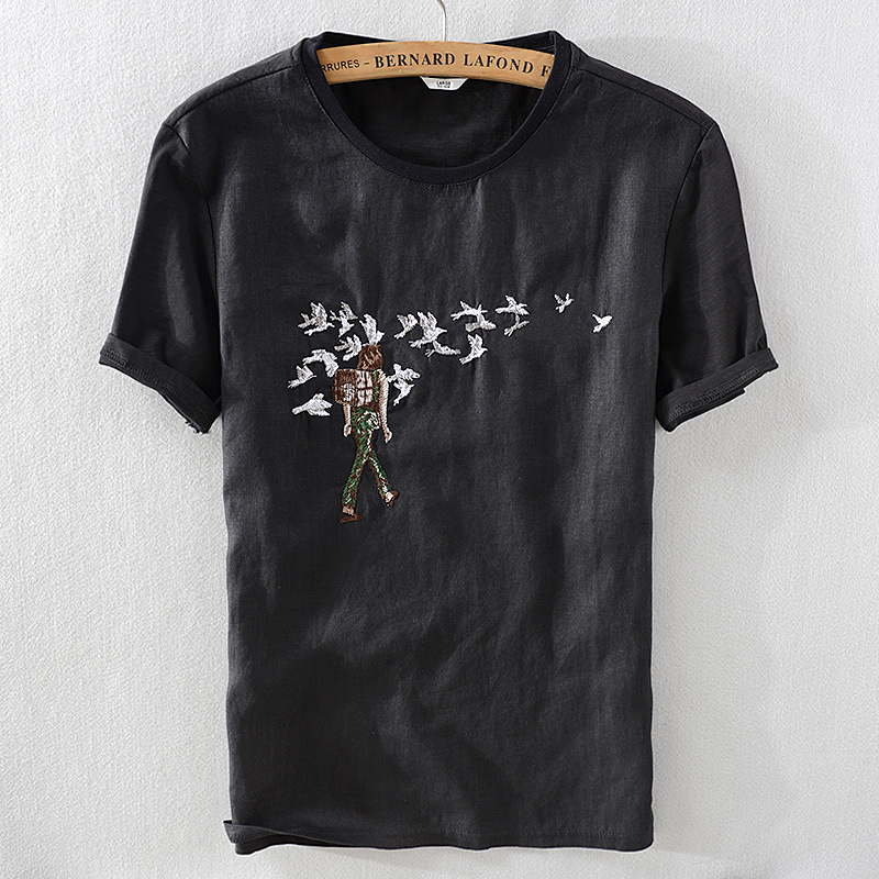 原创中国风设计夏季新款男士短袖T恤。极简颜色,以精致刺绣做点缀,凸显民族风,非常抢眼。开叉下摆剪裁,层次感丰富。宽大版型,对身材没要求,上身文艺慵懒。