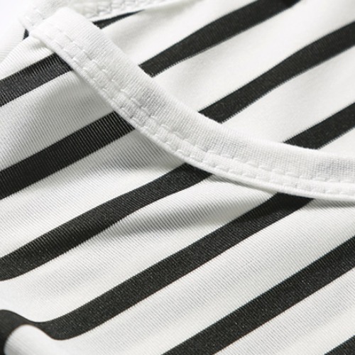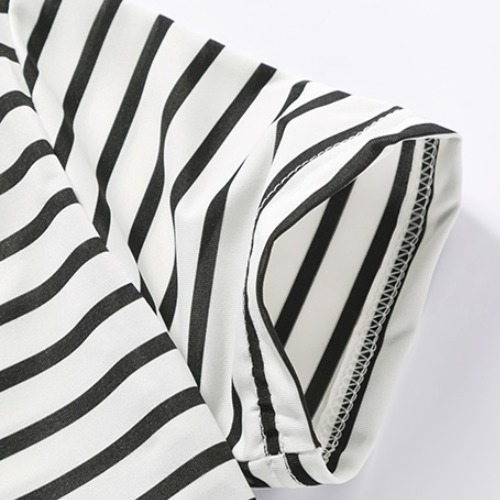 这是一层次感较强的横条纹元素,注入了满满的休闲感,表达出十足清新学院风格,而且具有较强的搭配性。廓形的剪裁设计,能够很好的遮盖腰身赘肉,穿在身上显瘦且颇为休闲随性。由棉质面料制作而成,软糯舒适的手感,让人尽享清爽透气的着装体验。