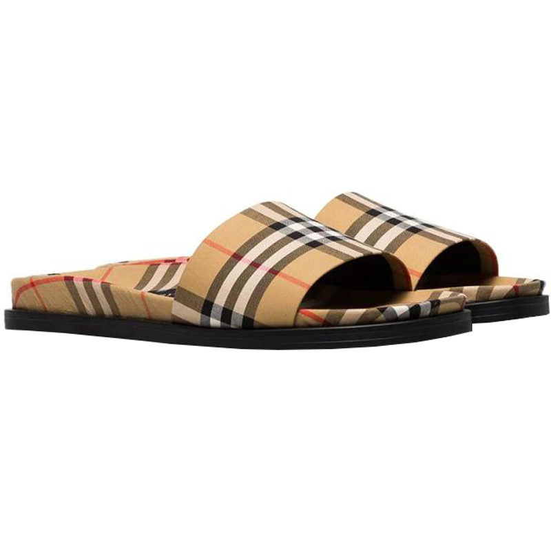 来自于这一款经典的奢华品牌Burberry旗下的经典卡其格子拖鞋,整体采用简约时尚的设计风格,采用了精选的pu材质打造鞋底与鞋垫,为你带来极致的缓震脚感,同时鞋面以超纤材质制作,贴合脚面,更加舒适自在!外出的时候,可以选择穿上一件时尚的印花T恤,搭配一条直筒的休闲短裤,最后再来一顶印花鸭舌帽,为你打造极致的潮男魅力!
