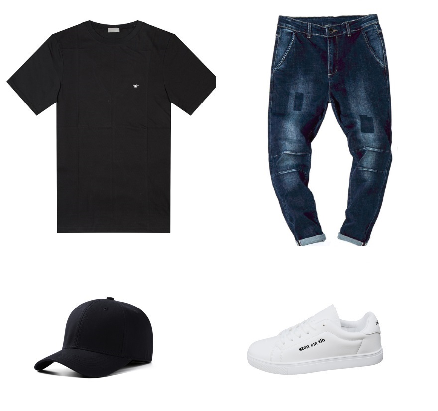 这款修身型的牛仔裤,潮范儿十足。搭配一件黑色的T恤,无需过多的图案点缀,简约的款式也能搭配出不一样的时尚感。一双经典的小白鞋与黑色鸭舌帽搭配,干净又大方的气质尽情显露,更好的展现出了成熟男人的稳重魅力,让你在人群中也一样亮眼。
