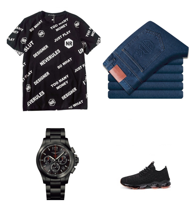 这条休闲裤主题采用暗色布局,呈现出个性硬朗的风格,在搭配上一件铺满印花的短袖,彰显出热情活力的气息,同时也可以防止过于闷热,轻松衬托修长腿形。出街再蹬上一双黑色运动鞋,配上一款腕表,烘托出酷帅有型的街头潮男格调。