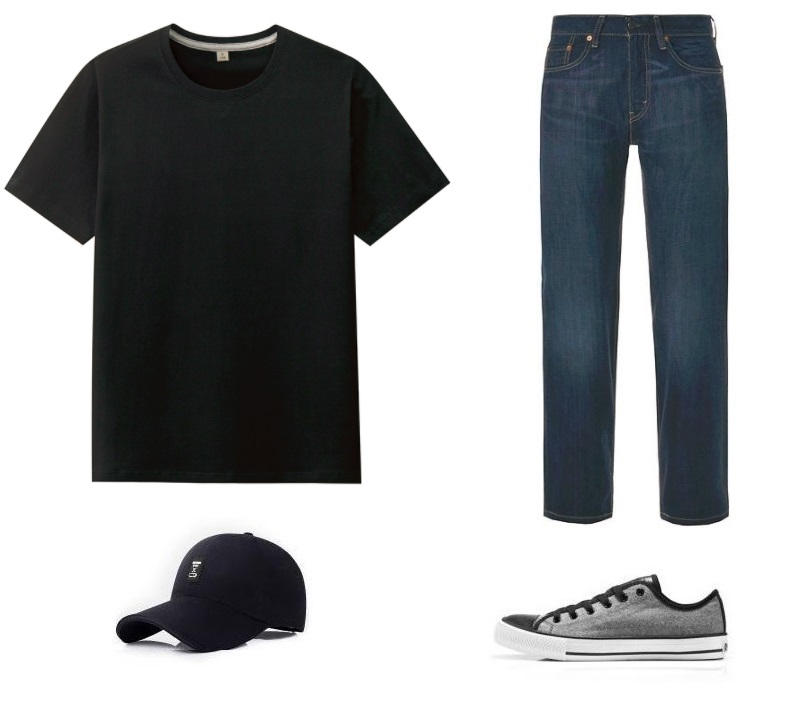 这款纯色休闲短袖主要是体现极简的生活风格,结合衣身宽松的裁剪方式处理,所以下身可以穿搭一条宽松的纯色牛仔裤,既凉爽又不失帅气的个性气质,脚上穿一双休闲运动鞋,配以一顶棒球帽,整体给人以干净利落的既视感,这身穿搭既适合跑步运动,又适合休闲逛街。