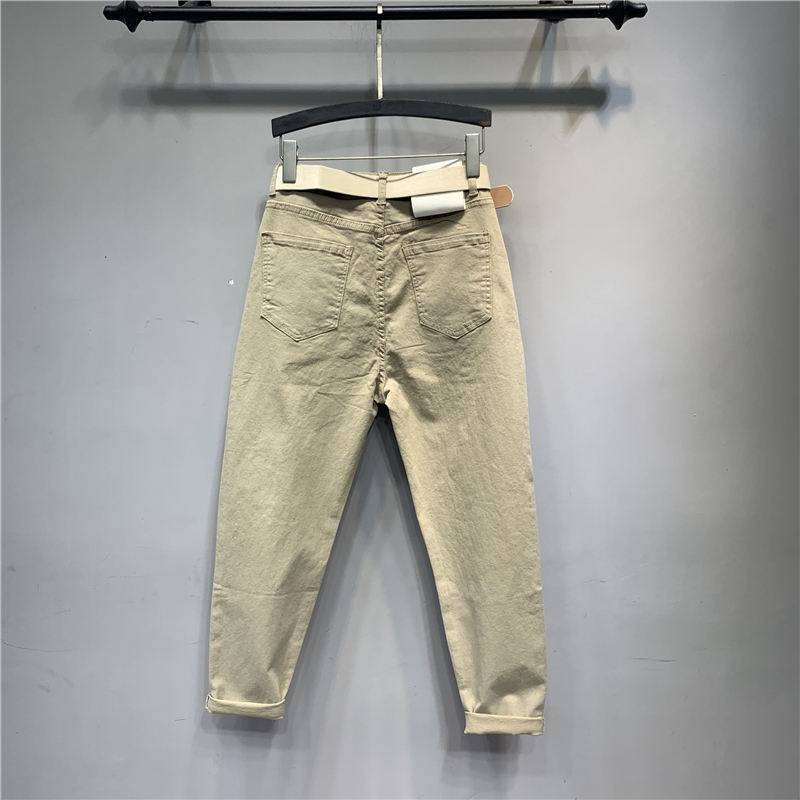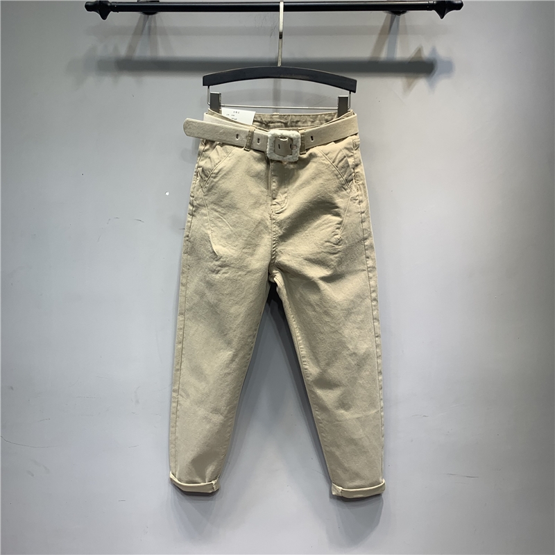 韩范款式的休闲长裤,加宽的哈伦版型剪裁,在造型的凹凸中不会有变形出现,时尚的纯色大底,微弹的材质上身更优雅有品味。造型立体的小裤脚剪裁,包裹双腿有品味,为其带来高挑曲线。