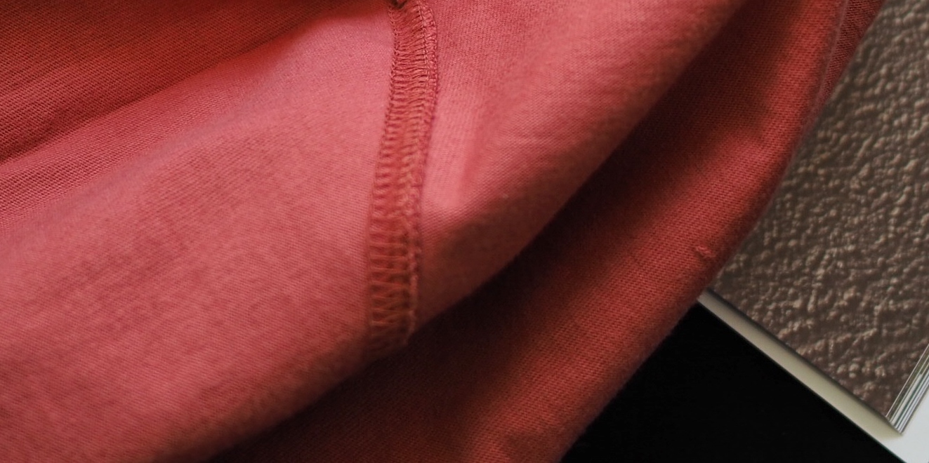 纯棉面料是以棉花为原料,经纺织工艺生产的面料,具有吸湿、保湿、耐热、耐碱、卫生等特点。一般而言,纯棉面料的吸湿抗热性较好,而且穿着舒适。纯棉面料手感自然柔软,感觉丰满厚实,略带有涩感和筋骨感,可拉扯的幅度较小,拉扯后恢复的速度较慢。纯棉织物没有明显光泽,色泽自然柔和,自然放下时,垂感自然,很少有“反光”现象。