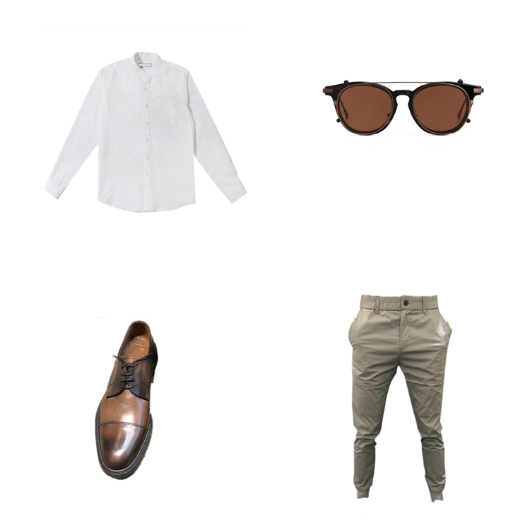 这款街头长裤,搭配一款简约衬衫,彰显欧美范,帅气逼人,再戴上一款潮范的眼镜,惹人注目。另外,踩上一双皮鞋就可以轻松出门了。