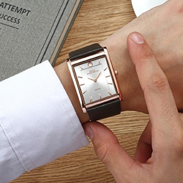 方形的款式很是显精炼,充分展现出优雅大气的强大气场,彰显出轻奢高贵的品质。石英机芯制作,走时精准,静音无忧更贴心。深度防水的功效,使用便捷更安心。真皮皮带的选择,又给双方带来舒爽柔软的佩戴体验。
