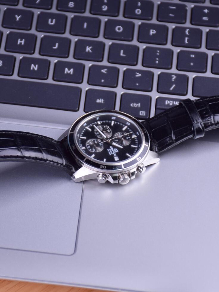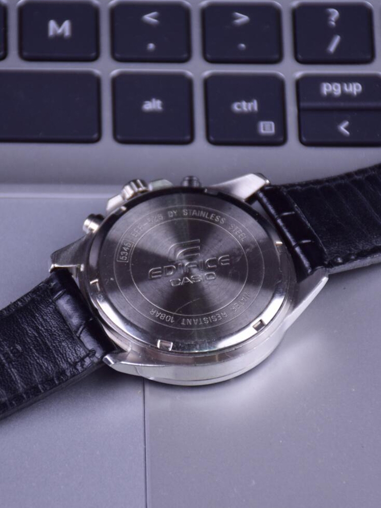 在大多数人的固有印象中,卡西欧手表是偏向休闲潮范的风格,但其实它也有偏商务的风格。这款卡西欧EFR-526L-1A采用流行经典的三盘六指针设计的黑色表盘,搭配上银黑色的皮表带,复古简约的造型,更能彰显出你的儒雅风范。