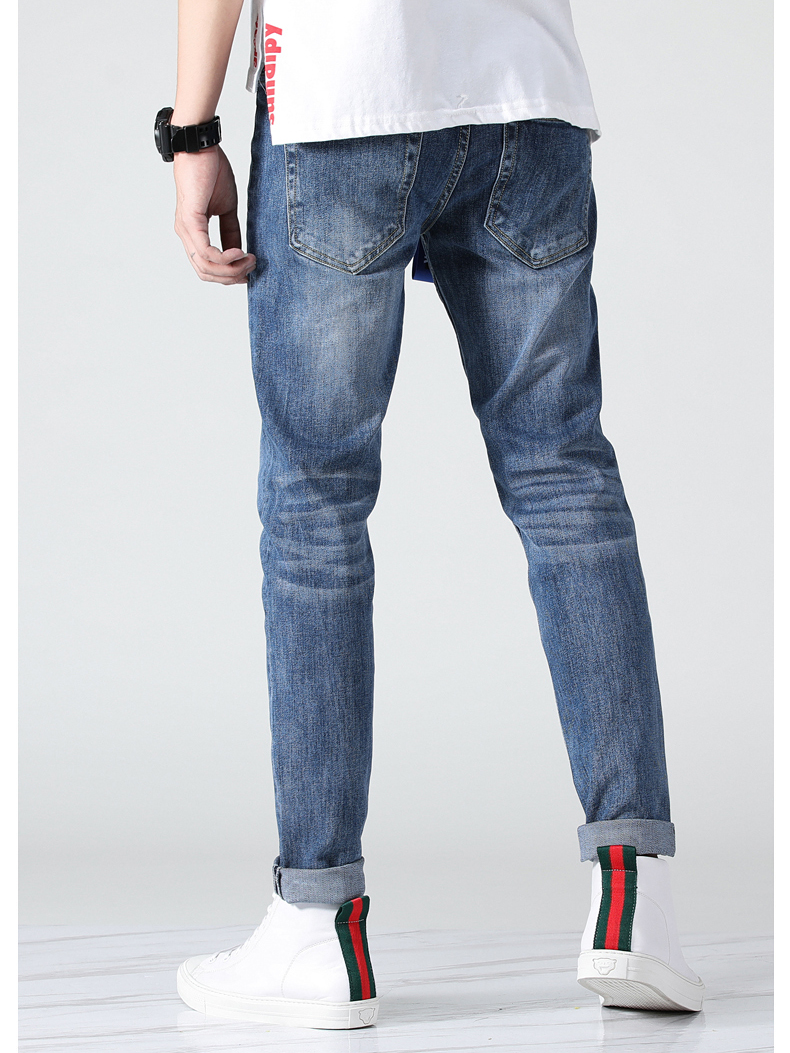 修身牛仔裤,紧贴身体曲线,凸显出精壮优美的身材,尽情散发雄性荷尔蒙;清新蓝调,呈现出渐变陈旧的效果,富有怀旧时光感。