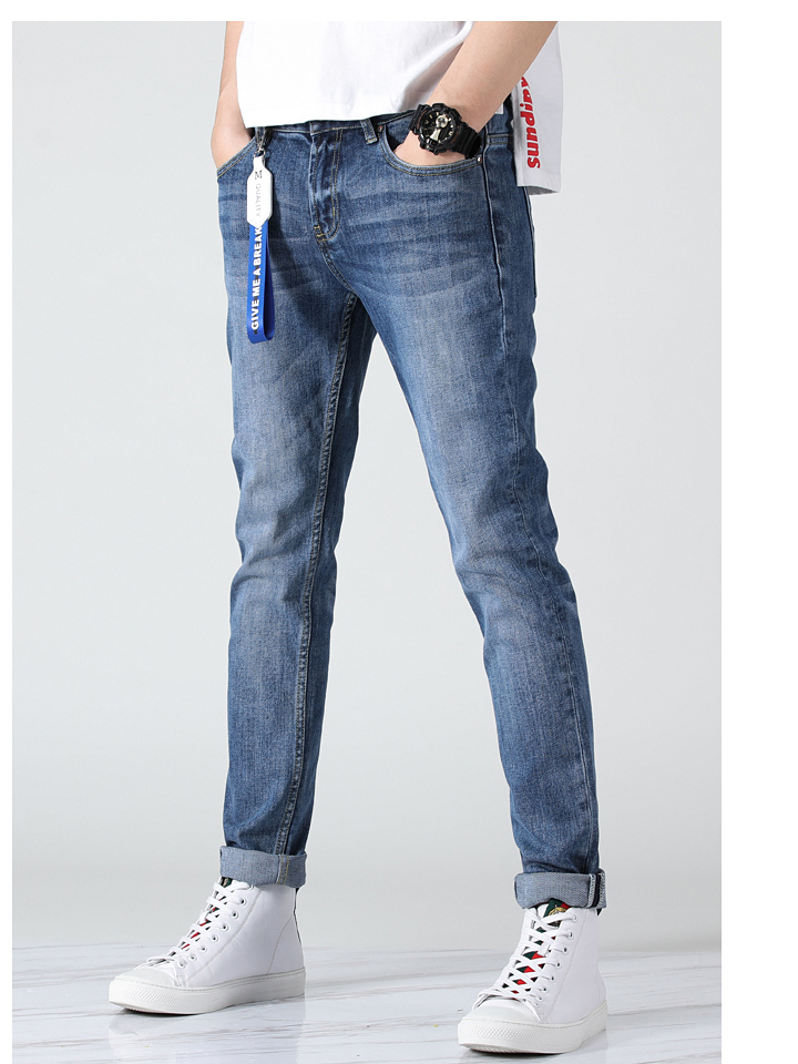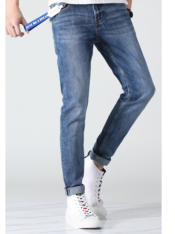 简单迷人的浅色牛仔裤,不需要太多的装饰与点缀,依旧可以让你成为人群中的焦点,修身小脚的版型,贴身显瘦。有微小弹力。