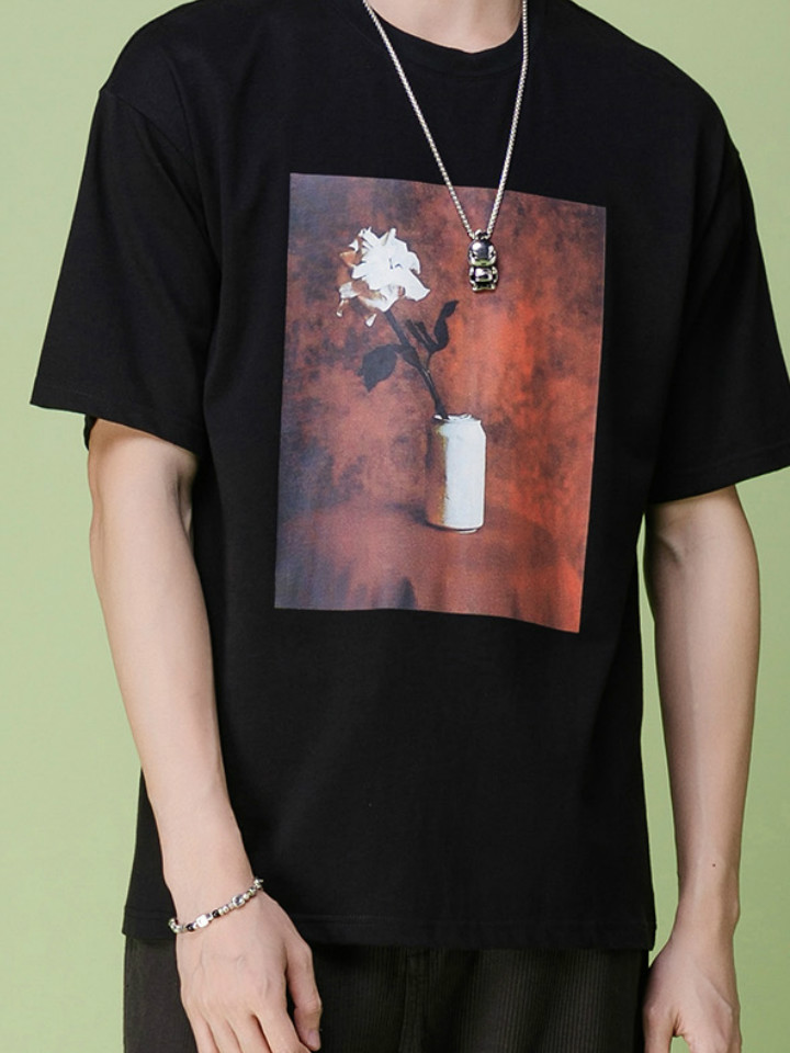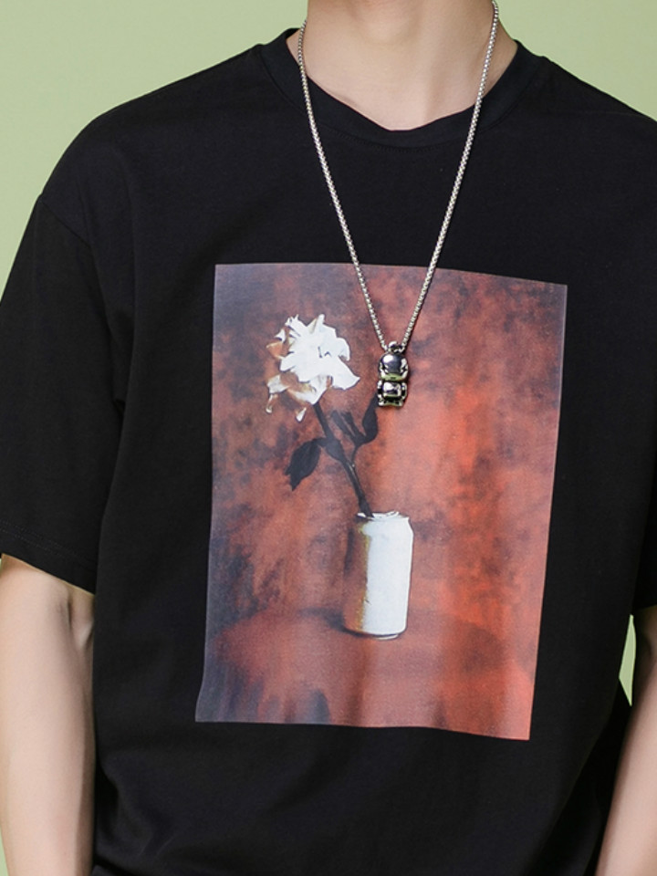 Undercover 易拉罐插花油画T恤,衣身的油画和创意的易拉罐插花设计。纯色的整体氛围下,装点标志性的大眼睛,展现潮流玩味的时尚态度,不仅十分讨潮男们喜欢,更是勾起了粉丝们心底里最美好的回忆。