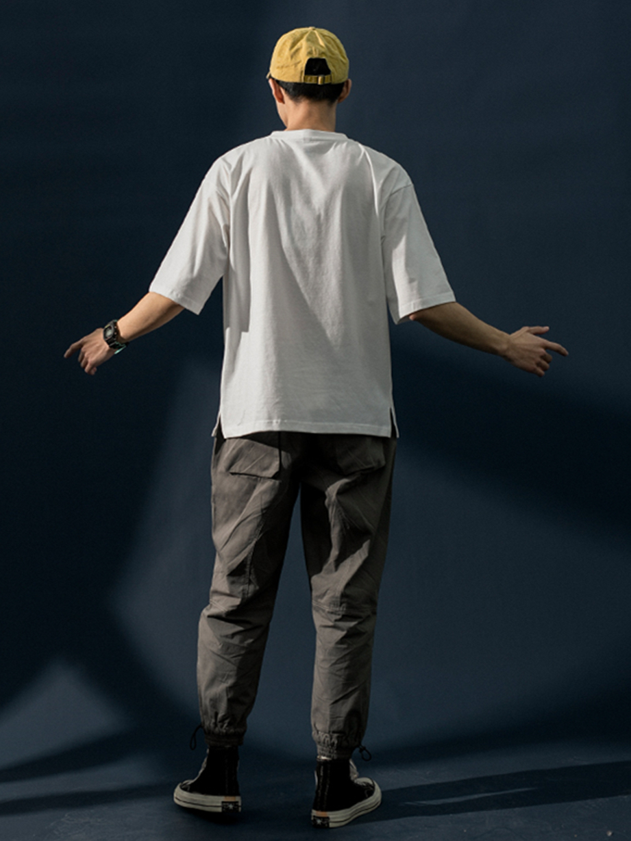 这件T恤采用纯色的样式,穿在身上简约而不失格调。五分袖的样式遮住了手臂上多余的赘肉,让微胖体型的人也可以HOLD住。胸前的刺绣做工很细腻精致,凸显出了很不俗的质感,打破了略显沉闷的场面。