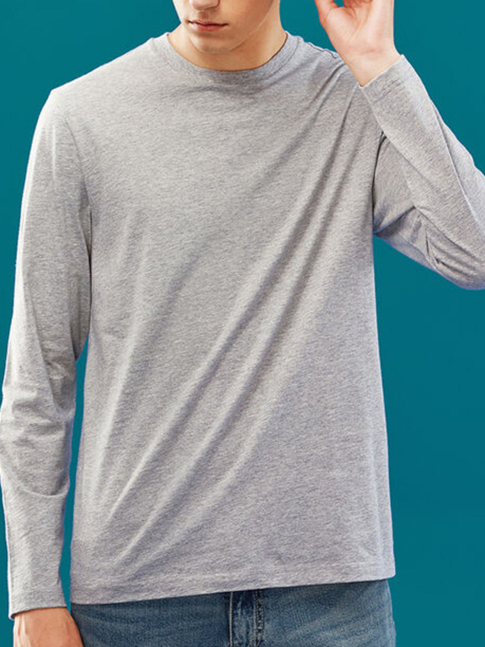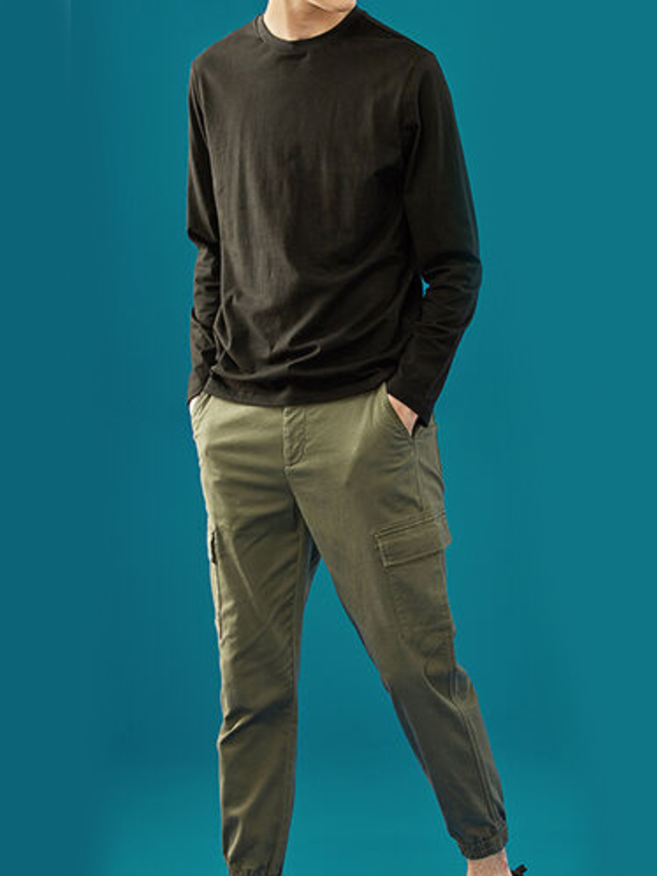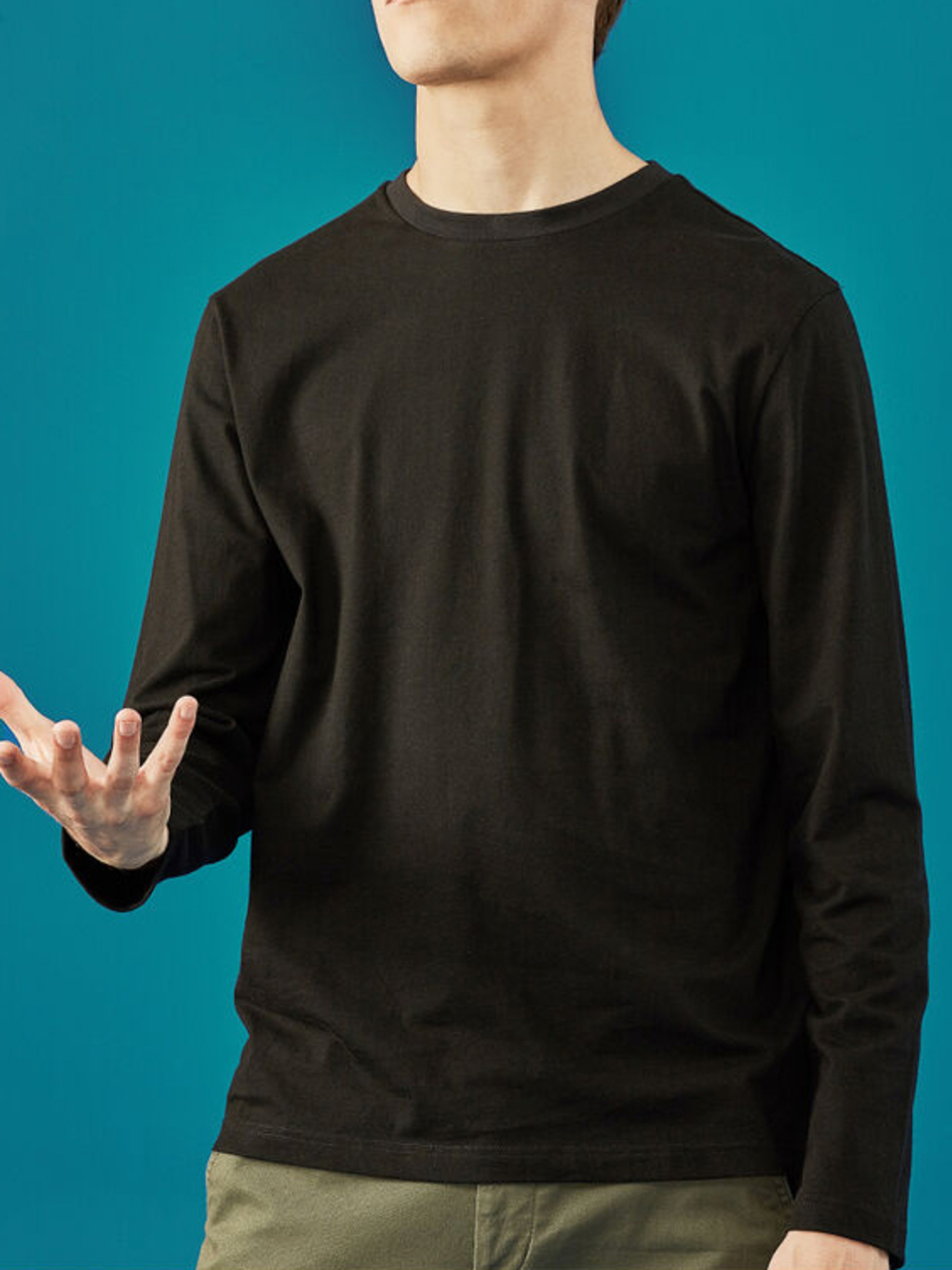 简洁干净的纯色T恤,春夏交替时节, 版型修身,面料有低调的纹理,另可是同色的螺纹,更方便穿着。