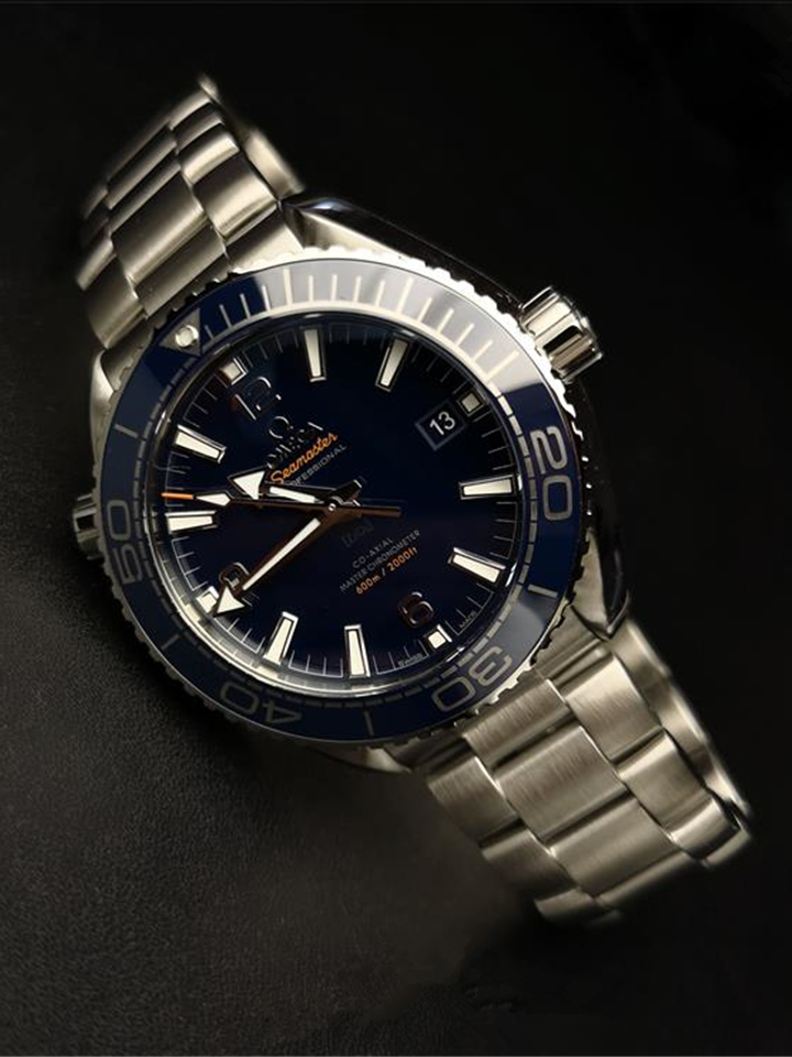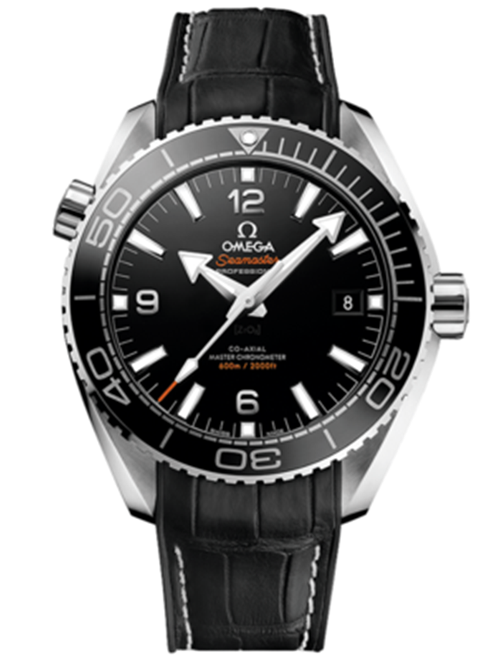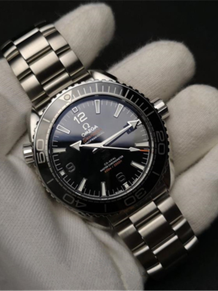 此表款配备耐磨损蓝宝石表镜,抛光黑色陶瓷表盘带有阿拉伯数字时标,3时位置设有日历窗口。43.5毫米精钢表壳搭配全球首创带有橙色橡胶的黑色陶瓷表圈。表圈潜水刻度以精制而成。其他设计特色包括齿槽状旋入式表背,精钢表链搭配欧米茄专利可延伸折叠表扣。
