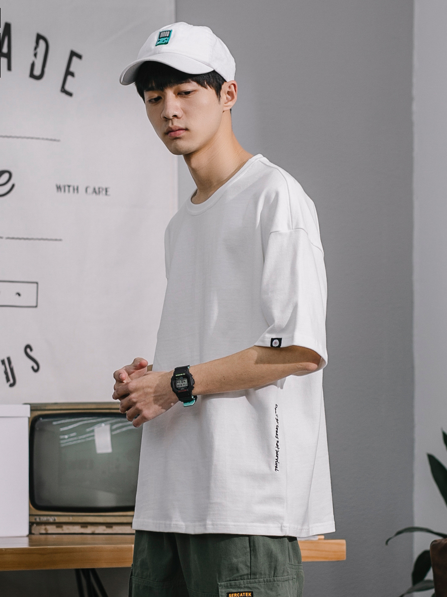 这款t恤是简约的风格,宽松的版型,时尚百搭,胸前的字母印花,很有个性,搭配牛仔裤或者短裤都很好看。