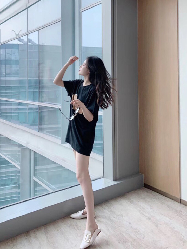 这款t恤是简约的风格,宽松的版型,时尚百搭,胸前的字母印花,很有个性,搭配牛仔裤或者短裤都很好看。