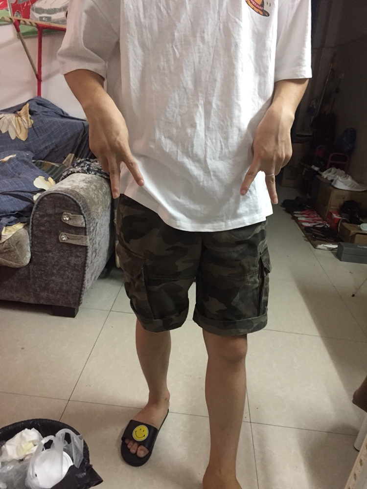 迷彩印花满印这款工装短裤,富有裤子浓郁的军旅风格调,型格尽显。