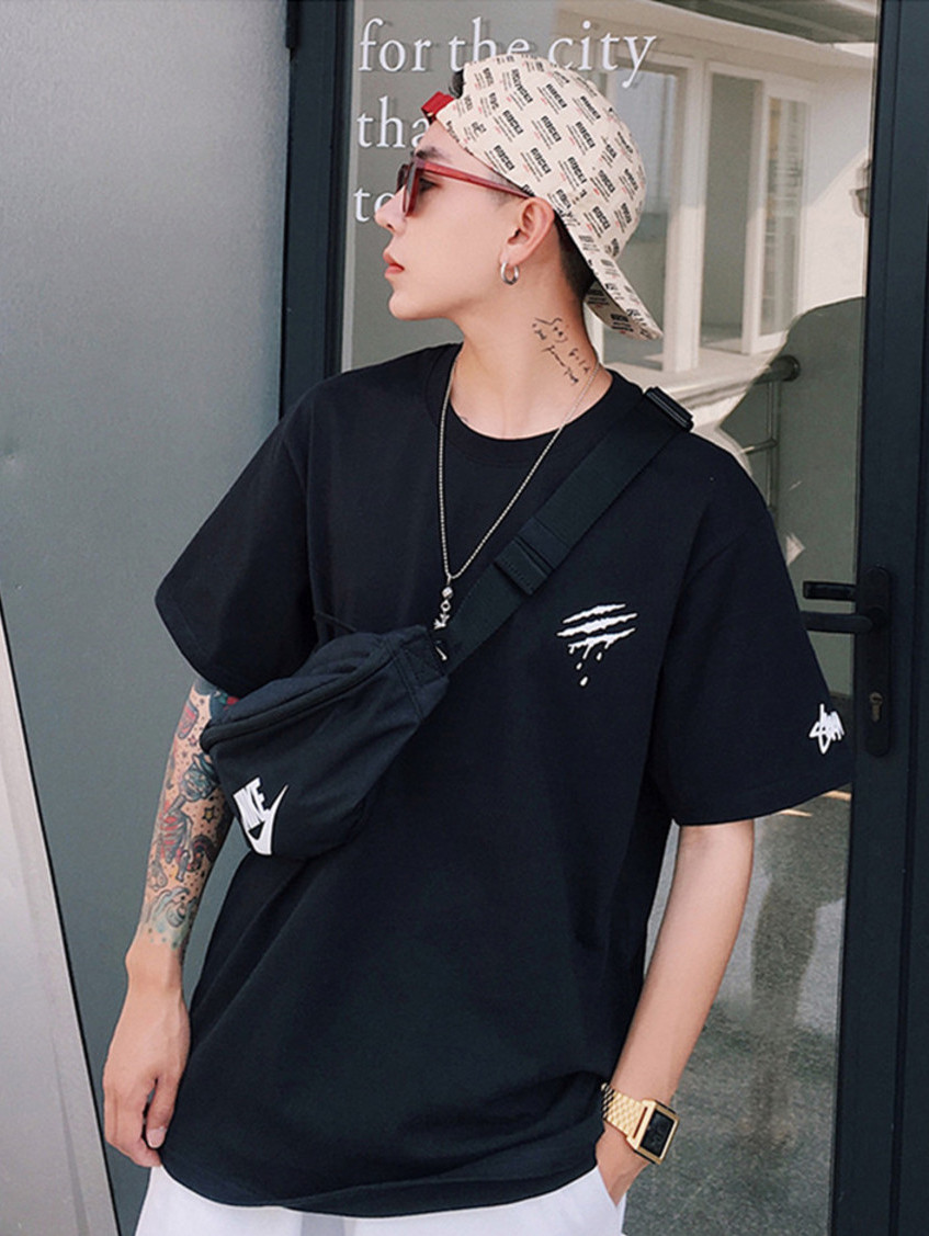 来自SuaMoment的血爪T恤,寓意:“每个人在人生中都会承受着折磨、压力,时常在逆境中,徘徊前行。总有过伤痕累累,将抓痕记忆成型,刻在背上,深深记着。即使跌倒了,也要努力前行,一切都会好!”真是暗黑且有着积极的生活态度,七分袖的剪裁也非常符合整体的气质。