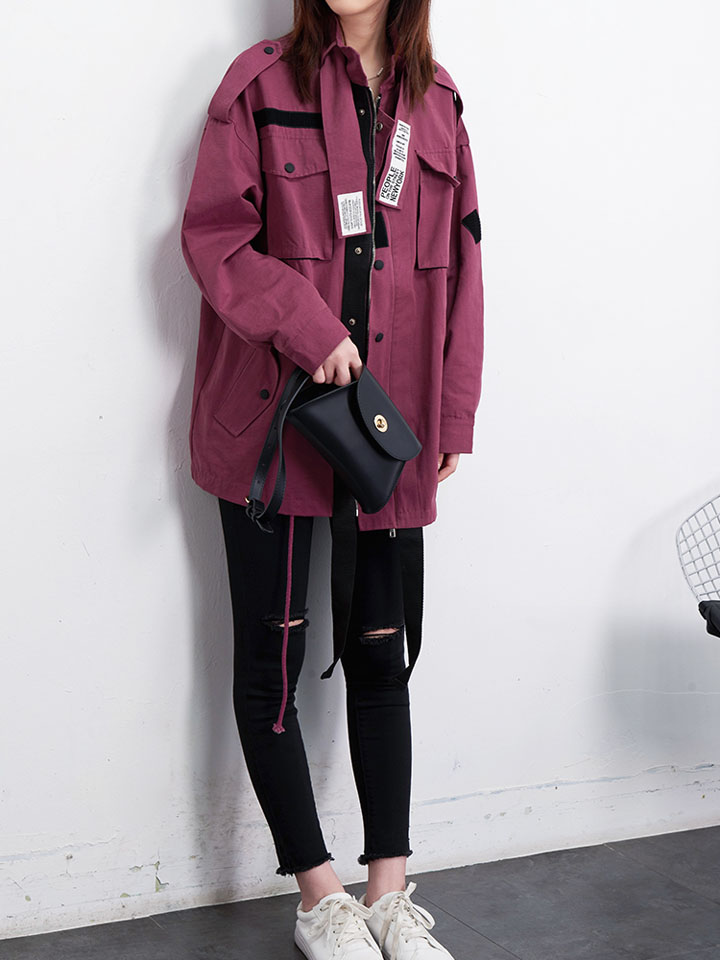 夹克似乎已经变成了换季季节的时髦必备款,因为它不仅仅是够潮,而说是万搭也不为过。精神十足的领口,帅气硬朗,一秒穿出中性的气场。对称的口袋,强调了衣身的工装风属性,很有细节感。红紫色沉稳大气,增添男友力!