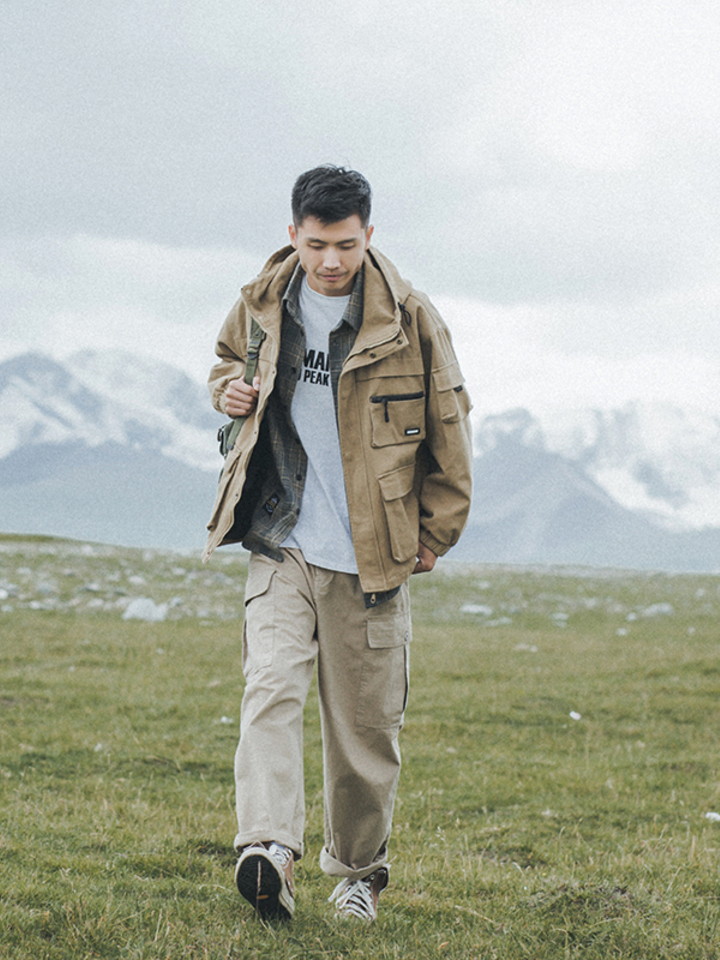 原创日系复古休闲夹克,采用优质面料打造,质感厚实,结实牢固。一体式连帽设计,更显青春活力感。个性的辑明线设计,丰富衣身亮点,增强时尚气息,尽显复古风。口袋的设计,兼具实用性与美观性。