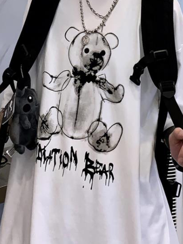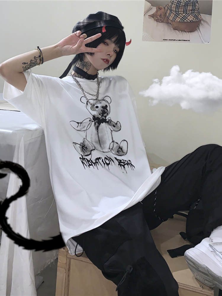 质感大气的浅色T恤,时尚同时又凸显品味。简约的小圆领,将脸蛋衬托得可爱秀气。柔软舒适的棉质布料,亲肤透气,夏季穿着舒爽,宽松的版型,活动自如,给予仙女最舒适的穿着体验。可爱的卡通小熊图案点缀衣身,穿上萌萌哒。