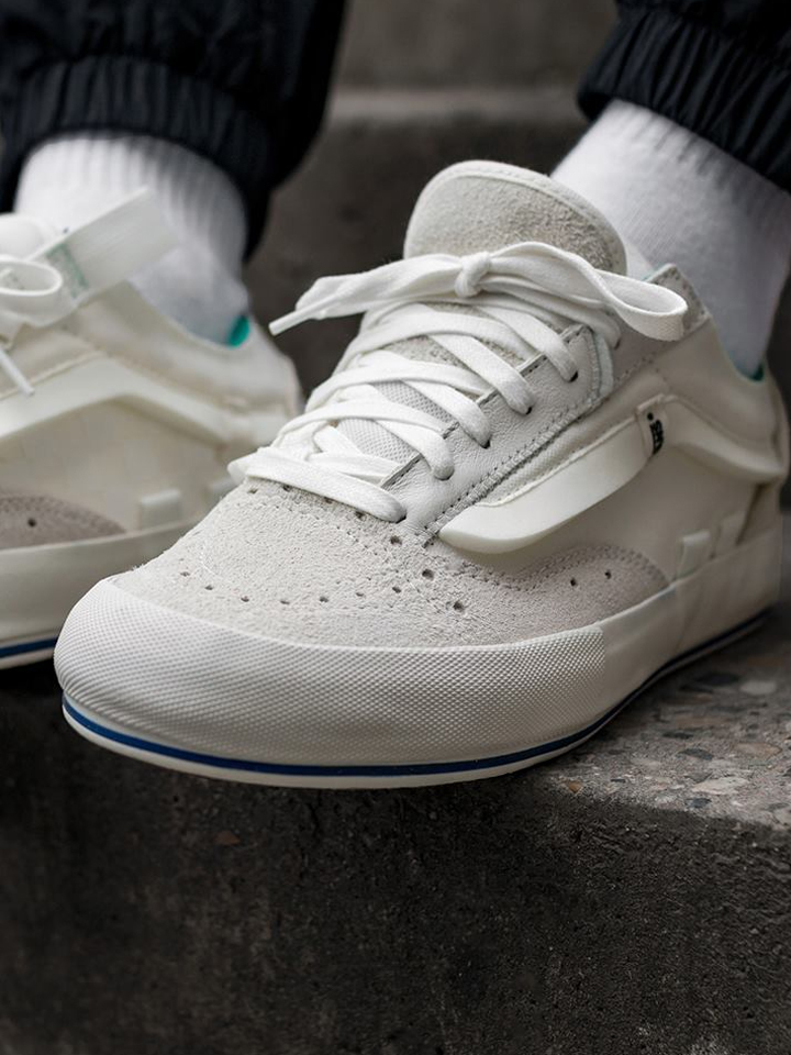 除了鞋带鞋孔片上可见的拼接痕迹,与此同时,鞋领也被“粗暴”剪开,舒适的海绵粗犷地暴露出来,整体看上去异常有型。