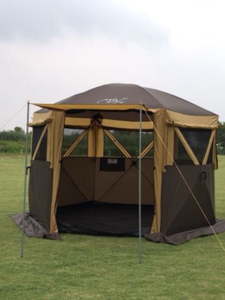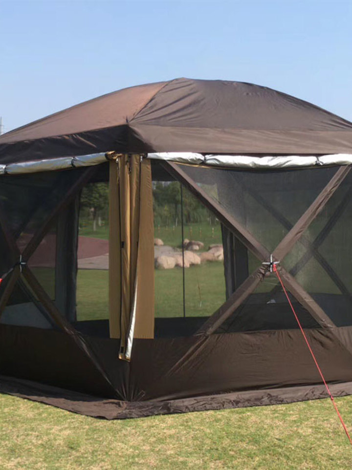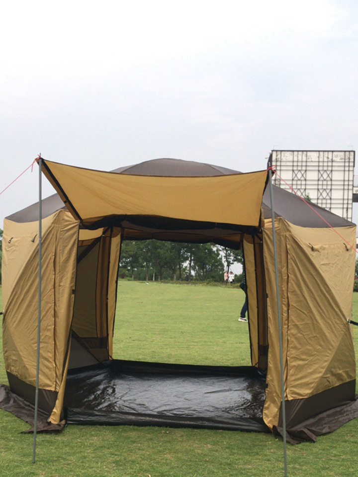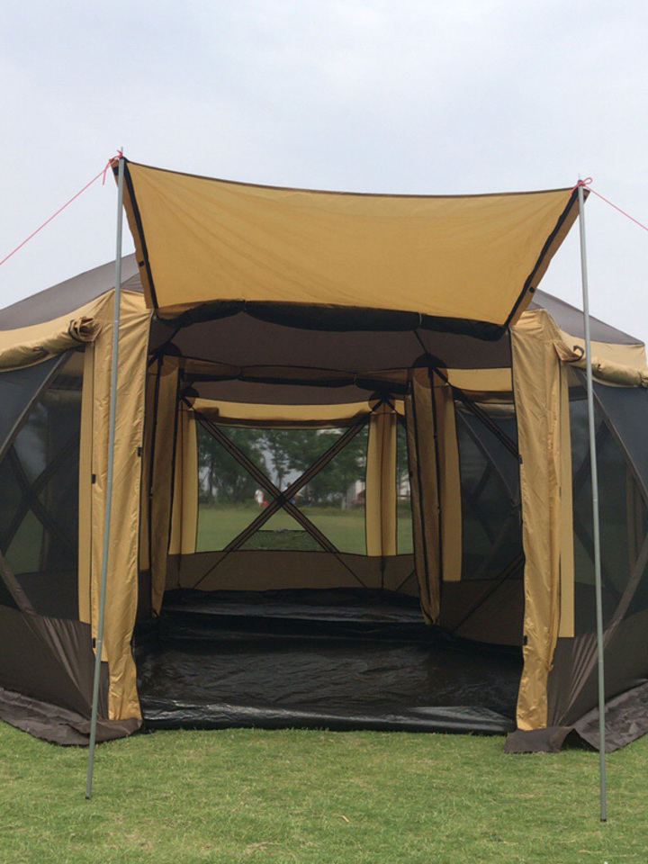 户外遮阳天幕,外帐采用150D涂银牛津布,具备极强的防水抗紫外线性能;大面积室内空间,可进行烧烤、娱乐活动;优质的玻璃纤维架杆社,有效支撑天幕,